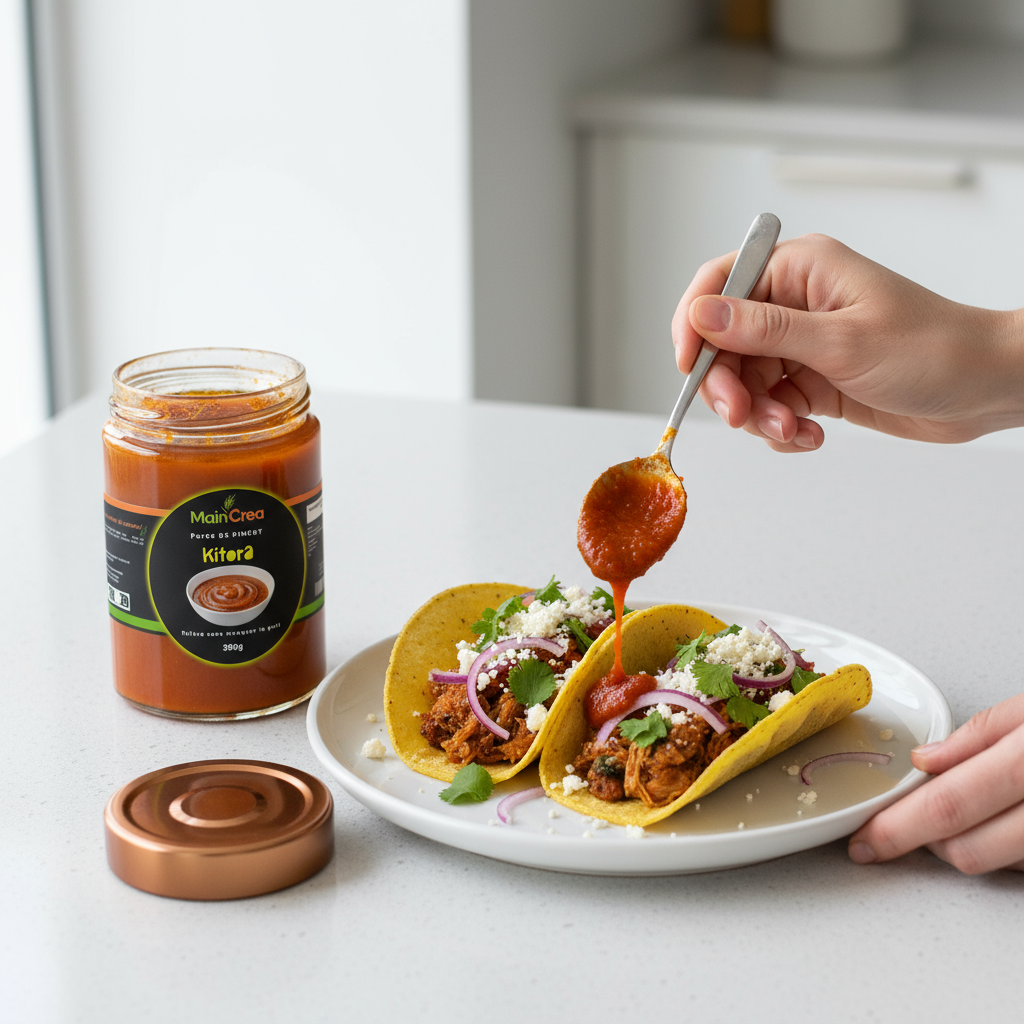Polyvalente et audacieuse, la Purée de Piment Kitora est conçue pour stimuler votre créativité en cuisine. Elle est parfaite pour :